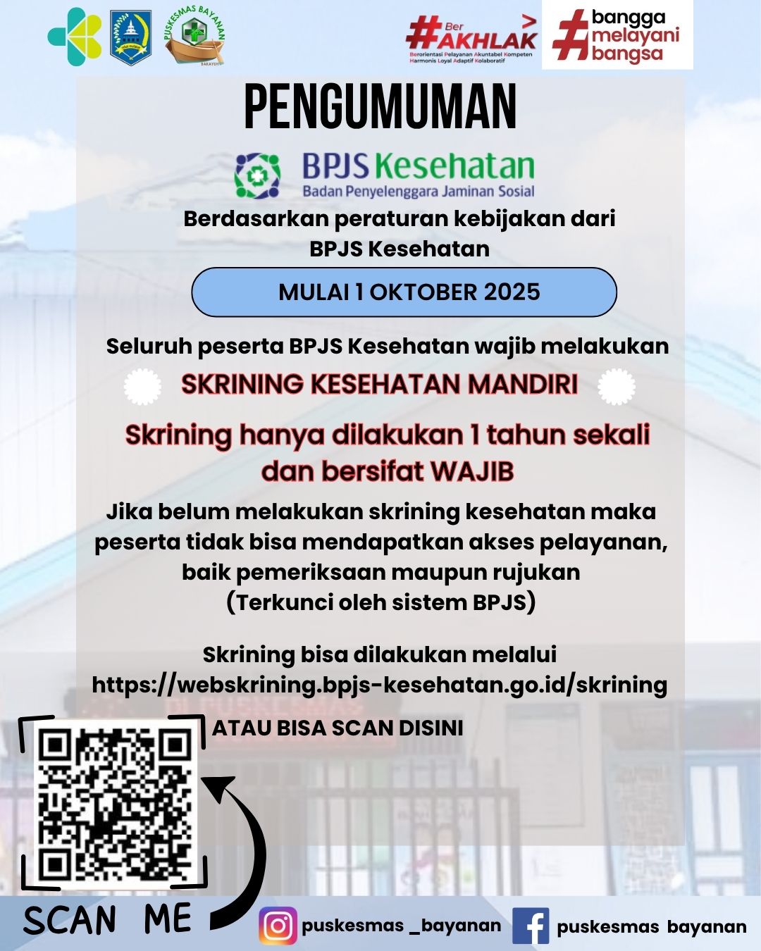 Mulai 1 Oktober 2025, seluruh peserta BPJS Kesehatan WAJIB melakukan Skrining Kesehatan Mandiri π©Ί